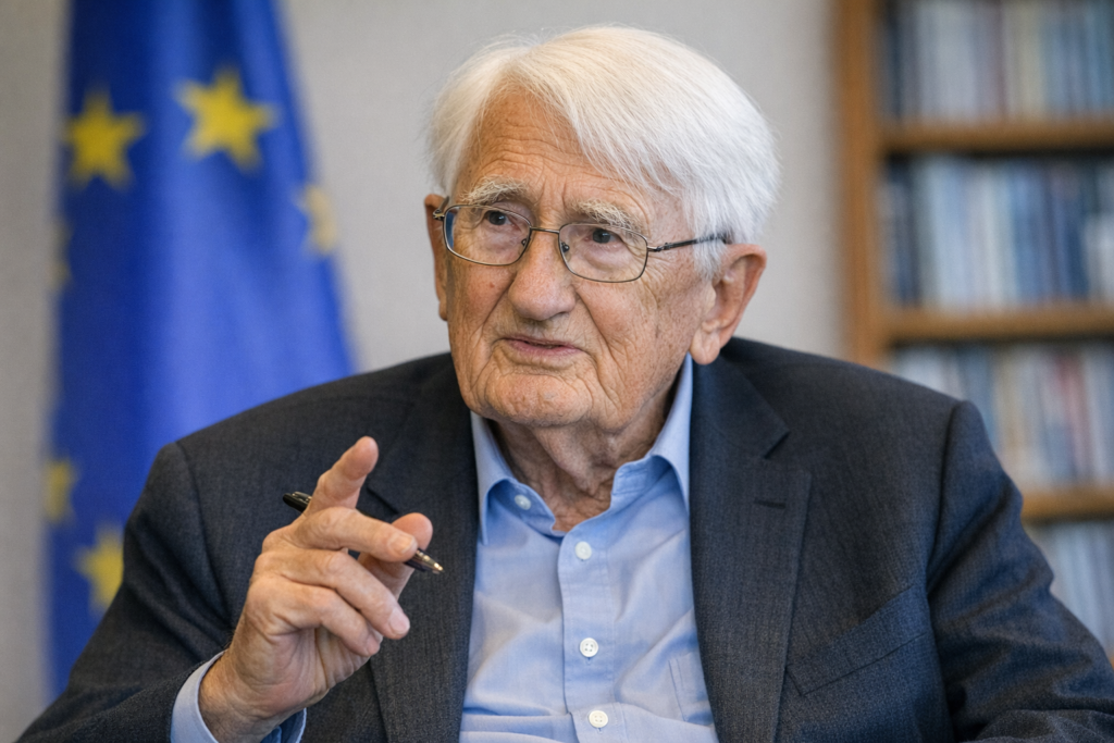Let op: dit is een nette parafrase in Habermas-lijn, geen letterlijke quote.