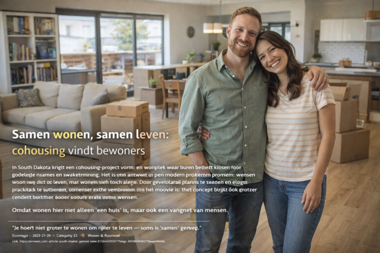 Kop (eigen): Samen wonen, samen leven: cohousing vindt bewonersKorte samenvatting (eigen): In South Dakota krijgt een cohousing-project vorm: een woonplek waar buren bewust kiezen voor gedeelde ruimtes en samenwerking. Het is een antwoord op een modern probleem: mensen wonen vaak dicht op elkaar, maar voelen zich toch alleen. Door gezamenlijk