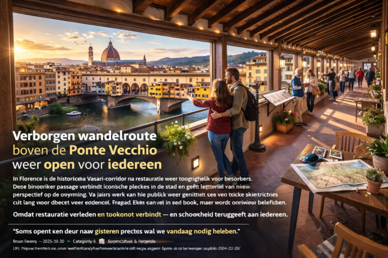 Kop: Verborgen wandelroute boven de Ponte Vecchio weer open voor iedereenKorte samenvatting: In Florence is de historische Vasari-corridor na restauratie weer toegankelijk voor bezoekers. Deze bijzondere passage verbindt iconische plekken in de stad en geeft letterlijk een nieuw perspectief op de omgeving. Na jaren werk kan het publiek weer genieten van